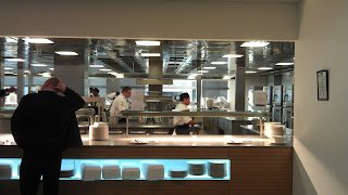 Those fortunate City workers at Nomura have this splendid, huge open kitchen as part of their staff restaurant. Why would anyone hide away their kitchen if you can create something as visually wonderful as this. Great theatre and a demonstration of what is possible.